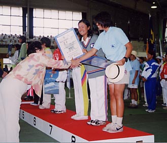 ★少年女子シーホッパー級SR で総合2位の入賞を果たした 鎌田奈緒子選手 メチャメチャ緊張して表彰台に上がったナオコちゃん。 やっとニッコリしました。 おめでとう!!来年は優勝目指してガンバレ!! |