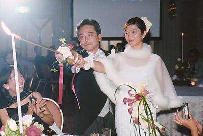 キャンドルサービスをしている緊張の2人。ほんと キレイなヨシカちゃん池田さんも 似合っているじゃない!!