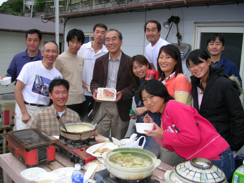 海から上がったら鍋の準備。私がバング職人になっているとレーディースなみんなやカニさんを中心として鍋準備チャクチャク完了。キムチ大使の熟年2号殿が車の渋滞にはまっているとの情報に