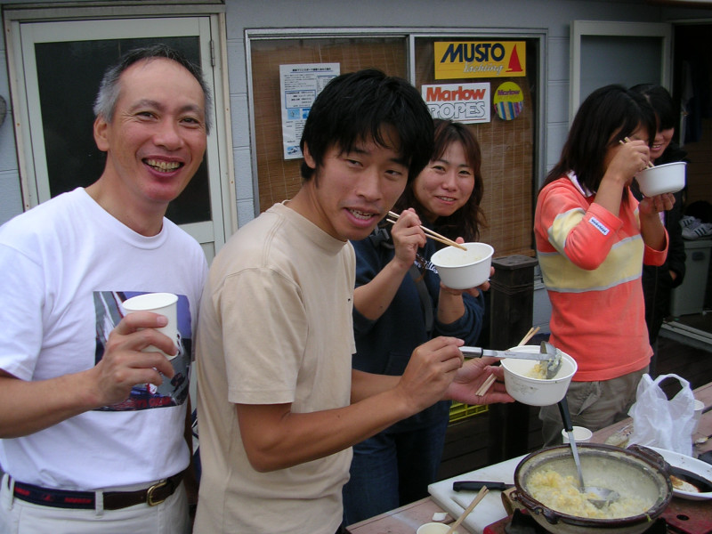 置き場付近でどよめきがおこり神に祈る人までも。。しかし、空腹には耐えられず、王様中心の野菜とブタさんトリさんしいたけさん入りの鍋を、いつもの欠食材木座人と逗子な人々や本日レース初参加な材木座新人候補さんで囲んで美味しくいただきました。